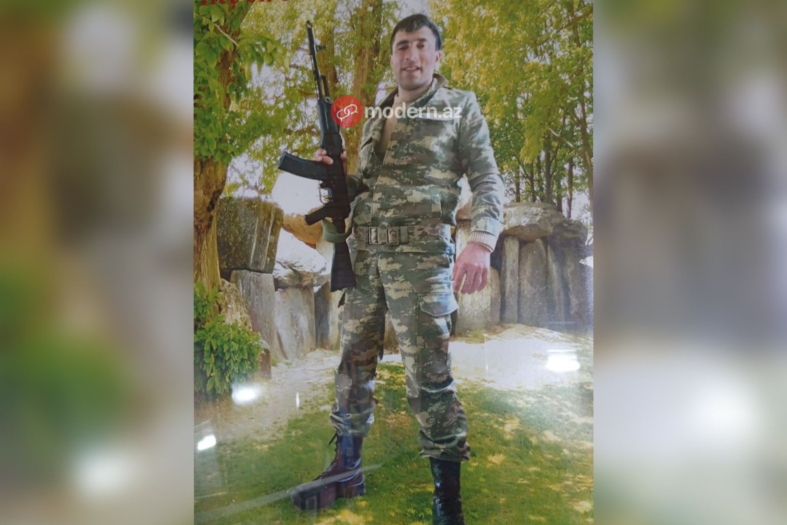 Şəhidin atası Hidayət Şəfiyevin sözlərinə görə, oğlundan qalan bu son foto Laçında döyüşlər zamanı bir evin qarşısında çəkilib: