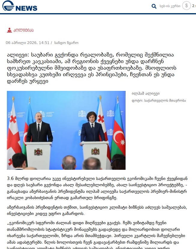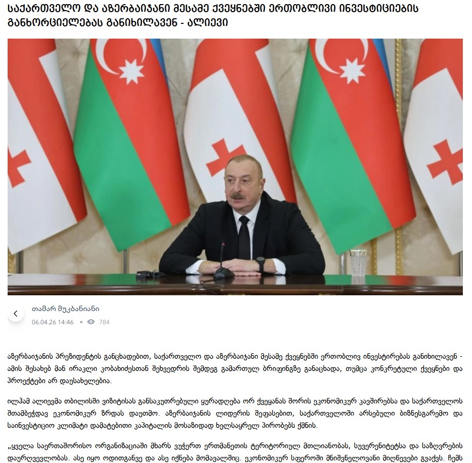 Gürcüstan mətbuatının ən çox diqqət yetirdiyi məqam isə Prezident İlham Əliyevlə Gürcüstanın Baş naziri İrakli Kobaxidze arasında görüşdən sonra dövlətimizin başçısının mətbuata bəyanatında səsləndirdiyi fikirlər olub.