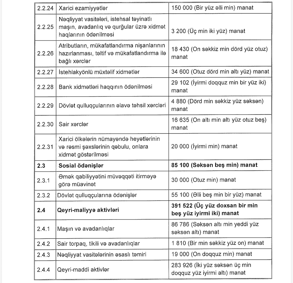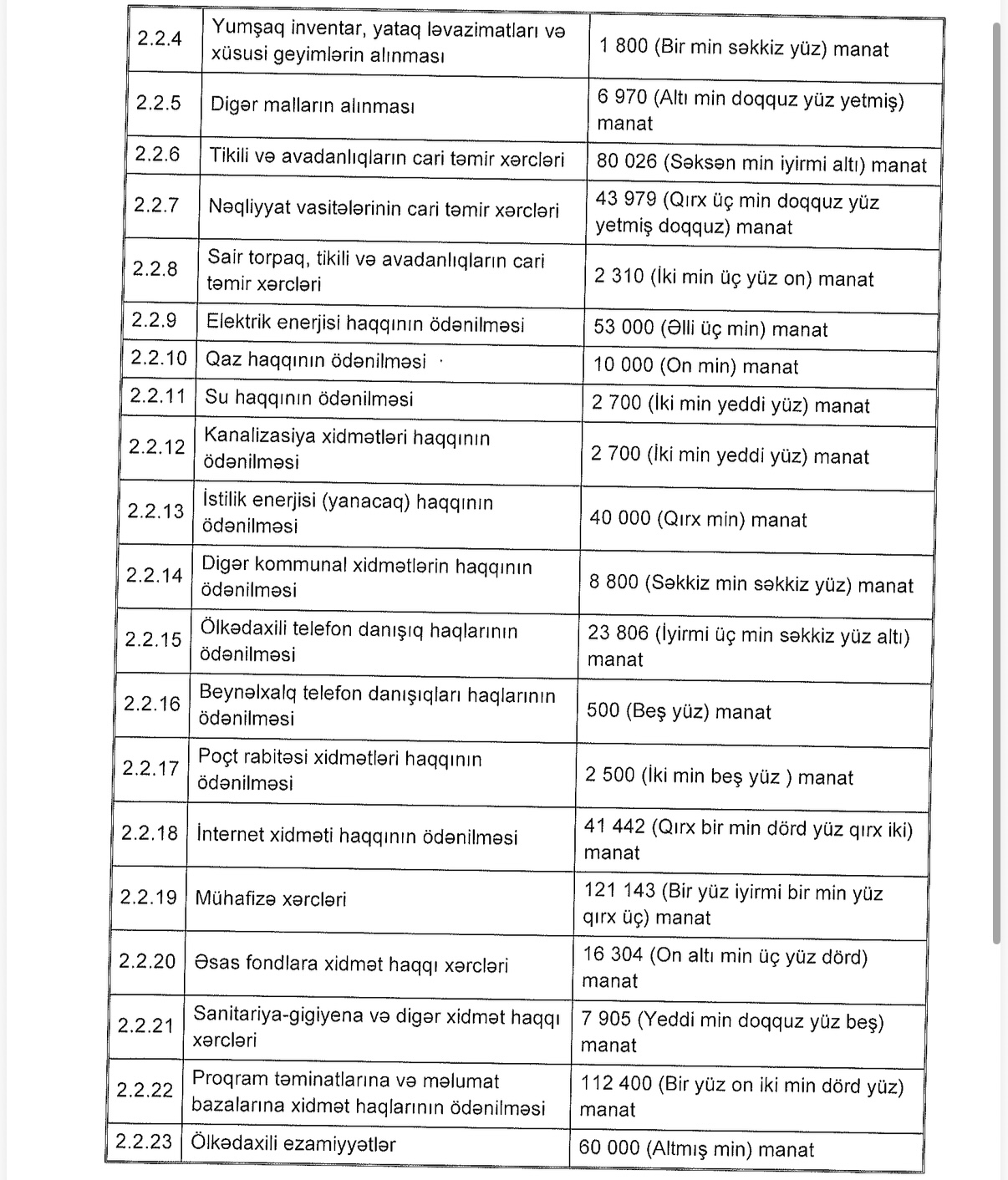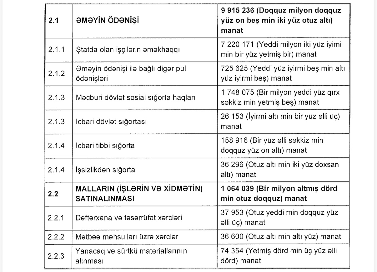 Sənədə əsasən, Hesablama Palatasının 2026-cı il üçün xərclər smetası aşağıdakı qaydada bölüşdürülüb:
