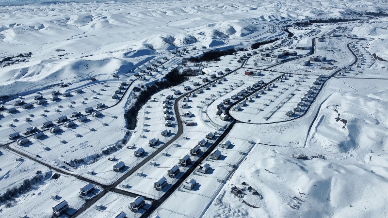 Modern.az xəbər verir ki, Cəbrayıl, Qubadlı və Zəngilan rayonlarında Bərpa, Tikinti və İdarəetmə Xidməti tərəfindən lentə alınan görüntülərdə sakinləri yenicə qayıdan kəndin ağ örpəyə büründüyü əks olunur.