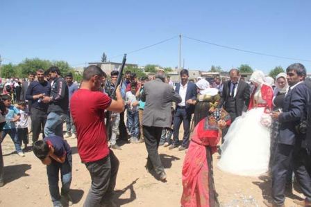 Toy mağarına gəlin və bəyin gəlməsi ilə birlikdə aralarında uşaqların da olduğu dəvətlilər, tapança və tüfənglərlə havaya dalbadal atəş açıblar.