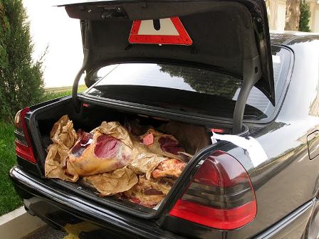 Modern.az xəbər verir ki, reyd zamanı Bərdə rayonundan paytaxta gələn Mustafayev Ramin Fuad oğlunun idarə etdiyi "Mersedes C-230" markalı 99 FL619 dövlət nömrə nişanlı avtomobil Qaradağ rayonunda Dövlət Yol Polisi postunda saxlanılıb və baxış keçirilib. Baxış zaman minik avtomobilində 140 kq miqdarında mənşəyinə və keyfiyyətinə dair heç bir baytarlıq sənədi olmayan heyvan cəmdəkləri aşkar olunub.