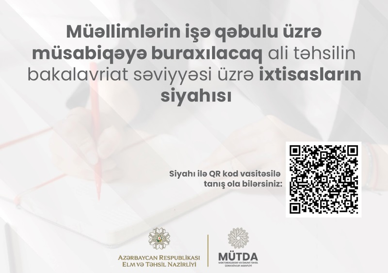 Bildirilib ki, siyahıda qeyd olunan qeyri-pedaqoji ixtisaslara sahib şəxslər müəllimlərin işə qəbulu üzrə müsabiqədə iştirak edə bilərlər:
