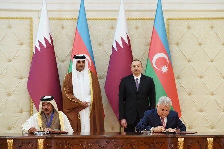 “Azərbaycan Respublikası Hökuməti ilə Qətər Dövləti Hökuməti arasında Birgə İqtisadi, Ticarət və Texniki Komissiyanın yaradılması haqqında Saziş”i Azərbaycanın xarici işlər naziri Elmar Məmmədyarov və Qətərin xarici işlər naziri Şeyx Məhəmməd bin Əbdülrəhman Al Tani imzaladılar.