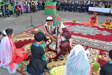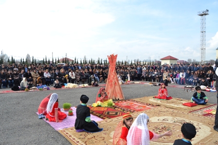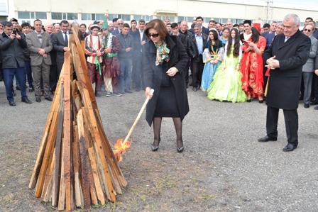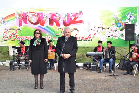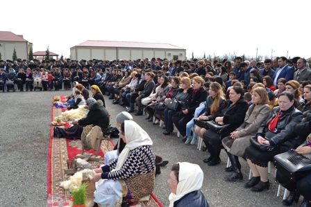 Rayon İcra Hakimiyyətinin başçısı Alı Alıyev və deputat Bahar Muradova əvvəlcə Novruza aid adət-ənənələri özündə əks etdirən sərgiyə bax;blar. Milli adət-ənənələrə uyğun olaraq meydanda yun daranıb, nehrə çalxalanıb, sacda yuxa bişirilib.