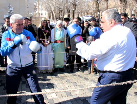 Heydər Əliyev meydanında keçirilən ümumrayon şənliyi musiqi və idmançıların müxtəlif idman nömrələri ilə və rəngarəng əyləncəli proqramlarla davam etdirilib.