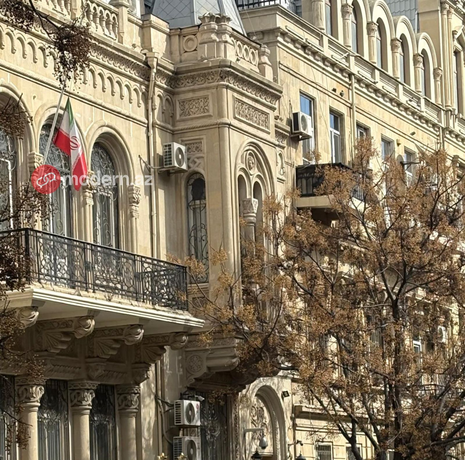The state flag has been lowered to half-mast at the Embassy of the Islamic Republic of Iran in Azerbaijan.