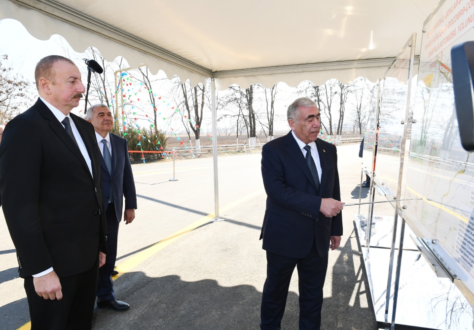 Modern.az xəbər verir ki, Azərbaycan Avtomobil Yolları Dövlət Agentliyinin İdarə Heyətinin sədri Saleh Məmmədov dövlət başçısına yolun texniki göstəriciləri barədə məlumat verərək deyib: