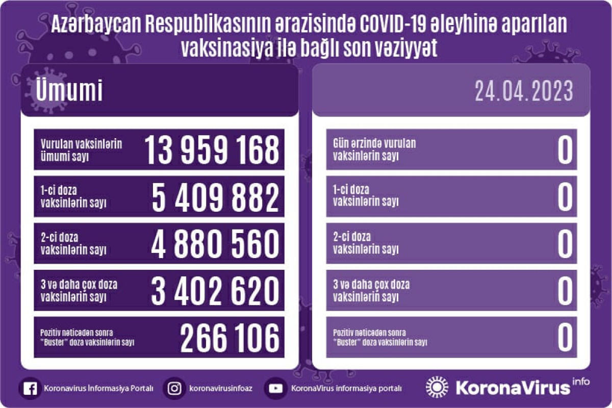 Qeyd edək ki, son sutkada heç kimə koronavirus (COVID-19) əleyhinə peyvənd vurulmayıb.