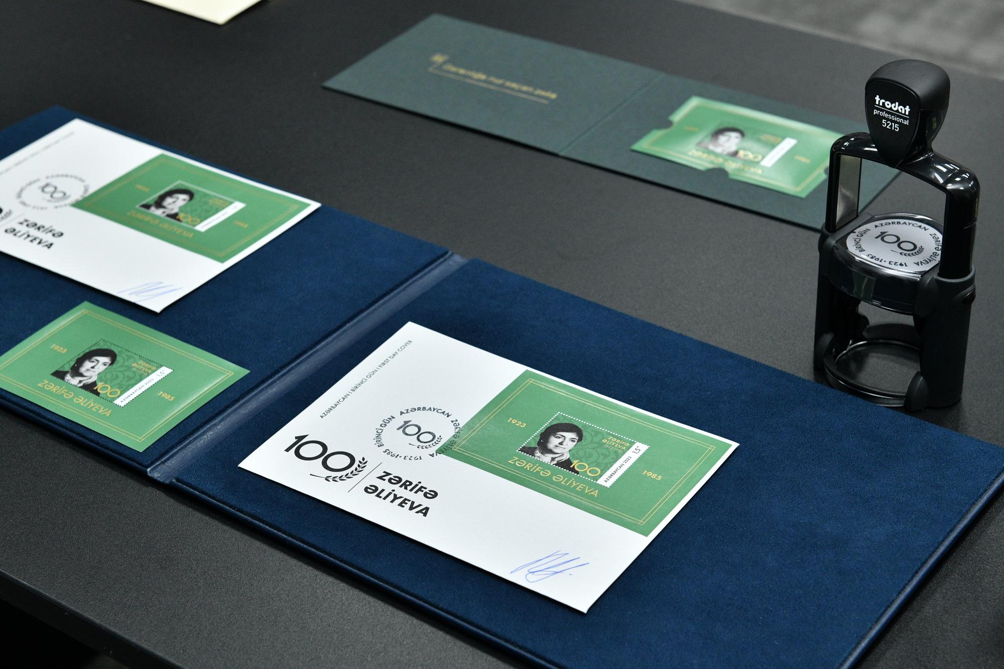 Daha sonra Zərifə Əliyevanın 100 illik yubileyinə həsr olunan poçt markasının möhürlənməsi proseduru həyata keçirilib.
