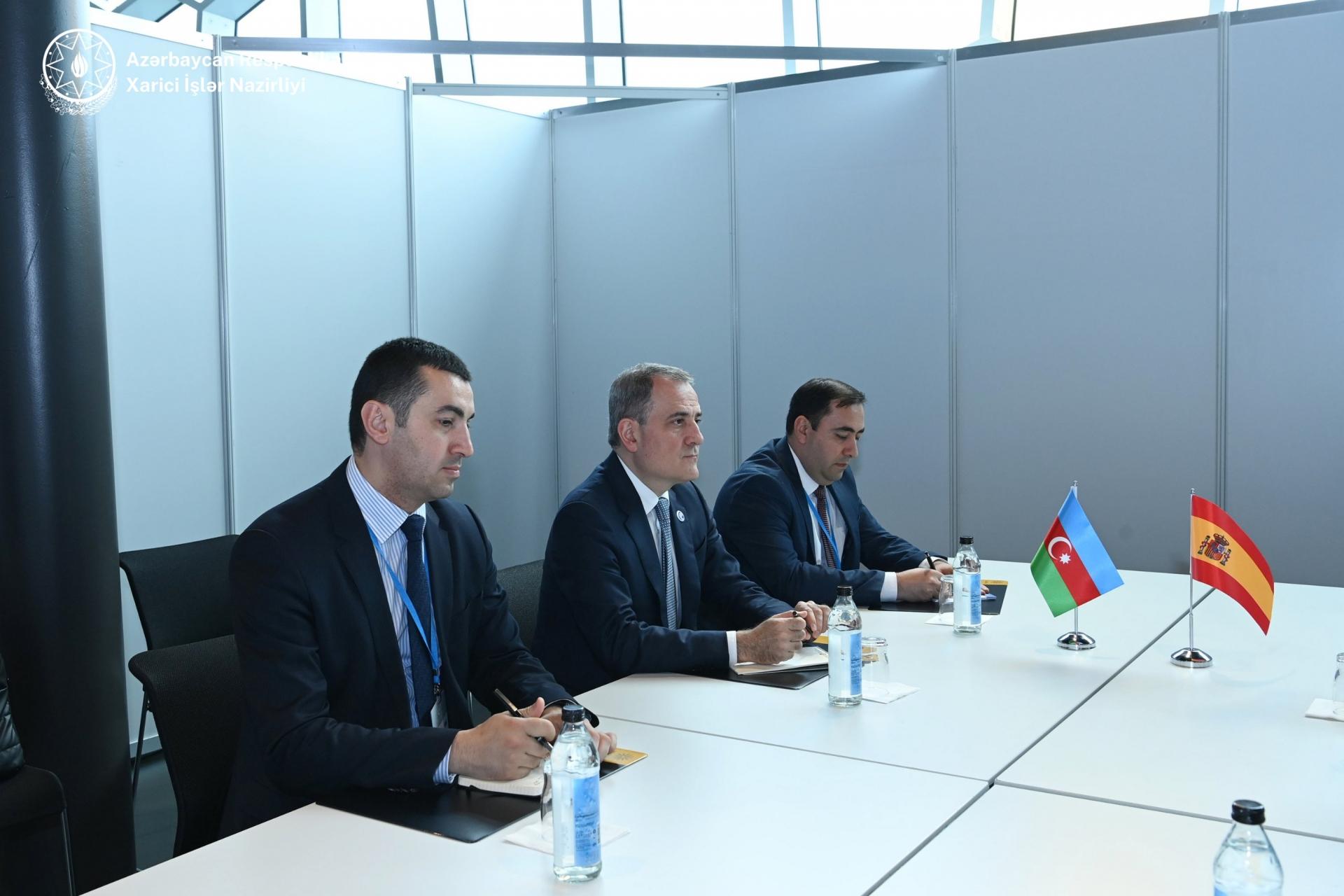 Xarici İşlər Nazirliyindən Modern.az-a verilən məlumata görə, görüşdə, Azərbaycan və İspaniya arasında ikitərəfli və çoxtərəfli əməkdaşlıq gündəliyində duran aktual məsələlər, o cümlədən regionda baş verən hadisələr müzakirə olunub.