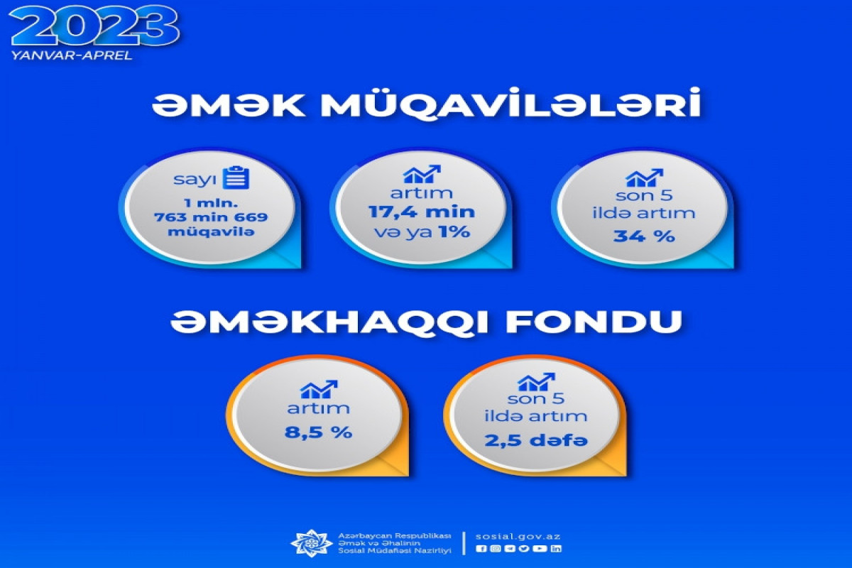 Ardıcıl əməkhaqqı islahatları, əmək müqavilələrinin sayında mütəmadi artım əməkhaqqı fondunda da davamlı artımla nəticələnir. 2023-ci ilin yanvar-aprel aylarında əməkhaqqı fondunda daha 8,5 faiz artım qeydə alınıb.