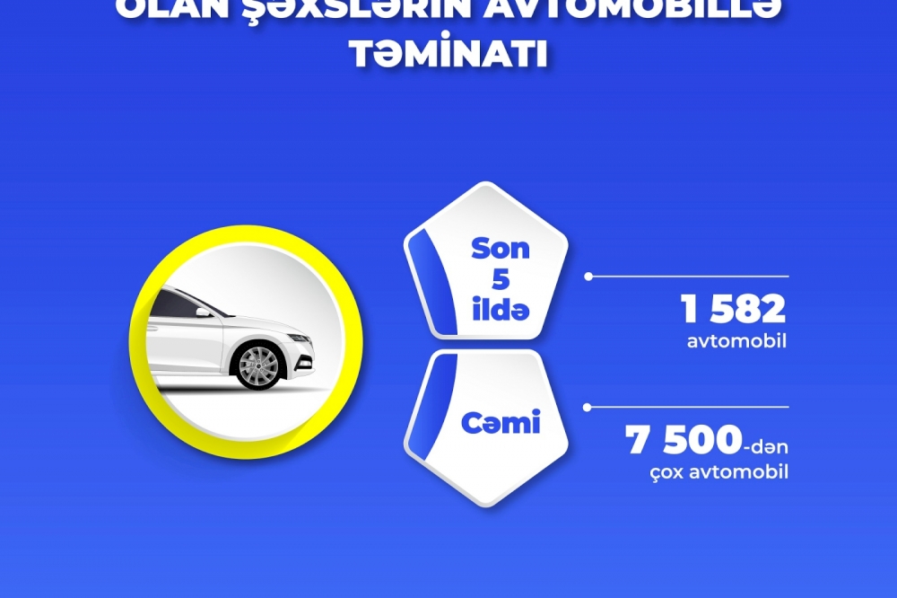Müharibə ilə əlaqədar əlilliyi olan şəxslərə 2018-2023-cü illərdə 1582, ümumilikdə ötən dövrdə 7500-dən çox avtomobil verilib.