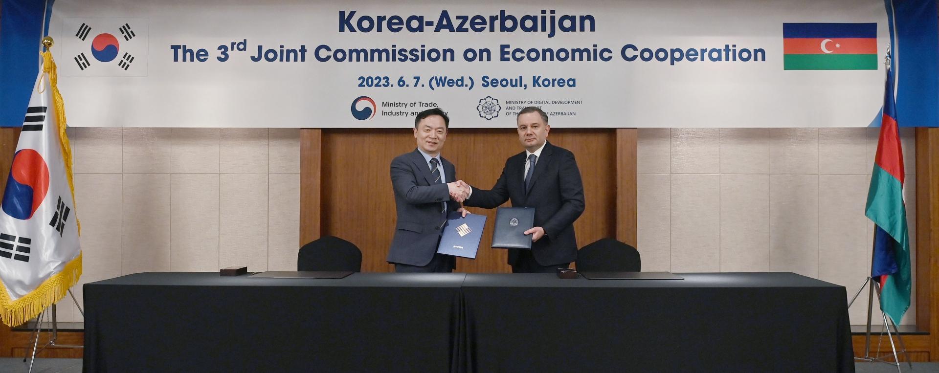 Məlumata görə, Komissiyanın Koreya tərəfdən həmsədri, bu ölkənin ticarət, sənaye və energetika nazirinin müavini Jeong Daejin Azərbaycan nümayəndə heyətini salamlayaraq bildirib ki, iki ölkə yüksək iqtisadi və mədəni əlaqələrə malik dost ölkələrdir. O, diqqətə çatdırıb ki, ötən il Azərbaycanla Cənubi Koreya arasında diplomatik əlaqələrin qurulmasının 30 illiyi qeyd olunub.
