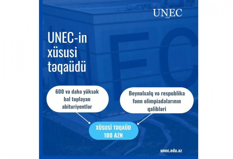 Azərbaycan Dövlət İqtisad Universitetinə (UNEC) 600 və daha yüksək balla qəbul olan abituriyentlər xüsusi təqaüd alırlar.