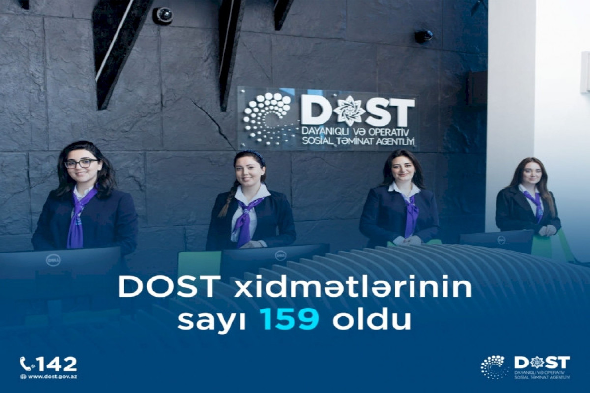 “DOST” mərkəzlərində göstərilən xidmətlərin siyahısı”na əlavə edilmiş yeni 5 xidmət nəzərə alınmaqla xidmətlərin sayı 159-a çatdırılıb.