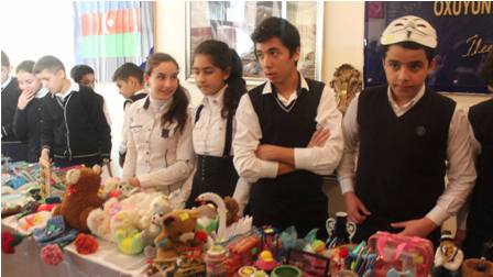 Nizami rayonu 62 saylı məktəb-liseydə Təhsil Nazirliyinin təşəbbüsü ilə “Birlikdə öyrənirik, istirahət edirik, inkişaf edirik” devizi altında, məktəb icmaları layihəsi çərçivəsində satış yarmarkası təşkil olunub. Sərgi yarmarkasının keçirilməsində məqsəd satışdan əldə olunan gəlirlərin uşaq evlərin üçün istifadə edilməsi olub. Sərgidə əsasən 2, 3, 4-cü sinif şagirdlərinin hazırlaqdıqları yeni il oyuncaqları, bəzək əşyaları, təbii dibçək gülləri, süni güllər, ev şəraitində hazırlanmış şirniyyatlar, kitablar, şəkillər, toxunma əl işləri və başqa əşyalar satışa çıxarılıb.