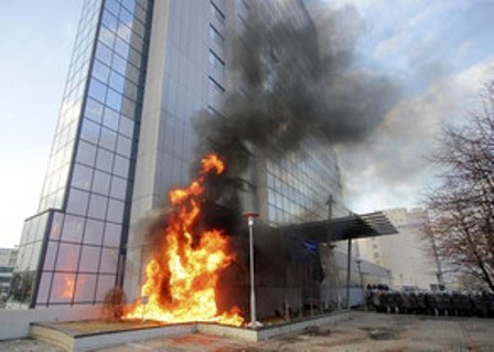 Kosovoda nümayişçilər hökumət binasını yandırıblar. Modern.az Report-a istinadən xəbər verir ki, hakimiyyətin Serbiya ilə sazişinə qarşı çıxan aksiya iştirakçıları parlamentin baş qərargah binasına yandırıcı qatışıqlı butulkalar atıblar.