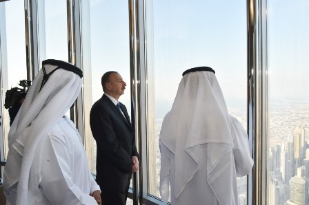 Birləşmiş Ərəb Əmirliklərində rəsmi səfərdə olan Azərbaycan Respublikasının Prezidenti İlham Əliyev fevralın 1-də Abu Dabidən Dubaya gəlib. Modern.az saytı xəbər verir ki, Prezident İlham Əliyev Dubaydakı məşhur “Bürc-Xəlifə” binası ilə tanış olub.