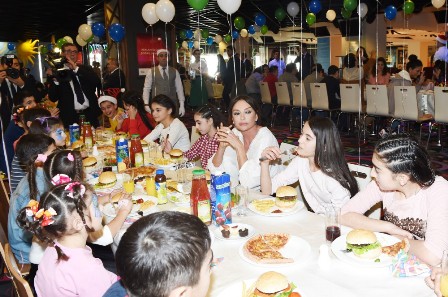 Heydər Əliyev Fondunun təşkil etdiyi tədbirdə müxtəlif uşaq evlərinin sakinlərinin birgə nahar etmələri onlar üçün həm də bu şənlikdən aldıqları təəssüratları bölüşmək imkanı yaratdı. Mehriban Əliyeva uşaqlarla səmimi söhbət etdi, onlarla şəkil çəkdirdi.