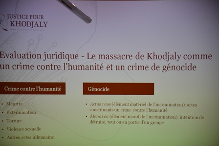 Heydər Əliyev Fondunun vitse-prezidenti Leyla Əliyevanın təşəbbüsü ilə keçirilən “Xocalıya ədalət!” kampaniyası çərçivəsində təşkil olunan bu tədbirin əsas məqsədi regionda ədalətin bərqərar olunması və fransız ictimaiyyətinin faciə ilə bağlı müfəssəl məlumatlandırılmasıdır. Səfir bildirib ki, faciə ilə bağlı cəzasızlıq Ermənistana müttəfiqlərinin köməyi ilə etnik təmizləmə aparmaqda və Azərbaycan ərazilərinin işğalını davam etdirməsinə imkan verib. Səfir Ermənistanın qeyri-konstruktiv və təcəvüzkar mövqeyi ilə danışıqlar prosesini pozduğunu, vasitəçilərin təkliflərinin heç birini qəbul etmədiyini diqqətə çatdırıb.