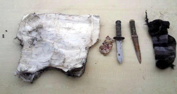 Hadisə yerində düşmənə məxsus iki ədəd mina, iki ədəd qumbara və istifadə etmək istədikləri qana bulaşmış ləvazimatlar aşkar olunub.